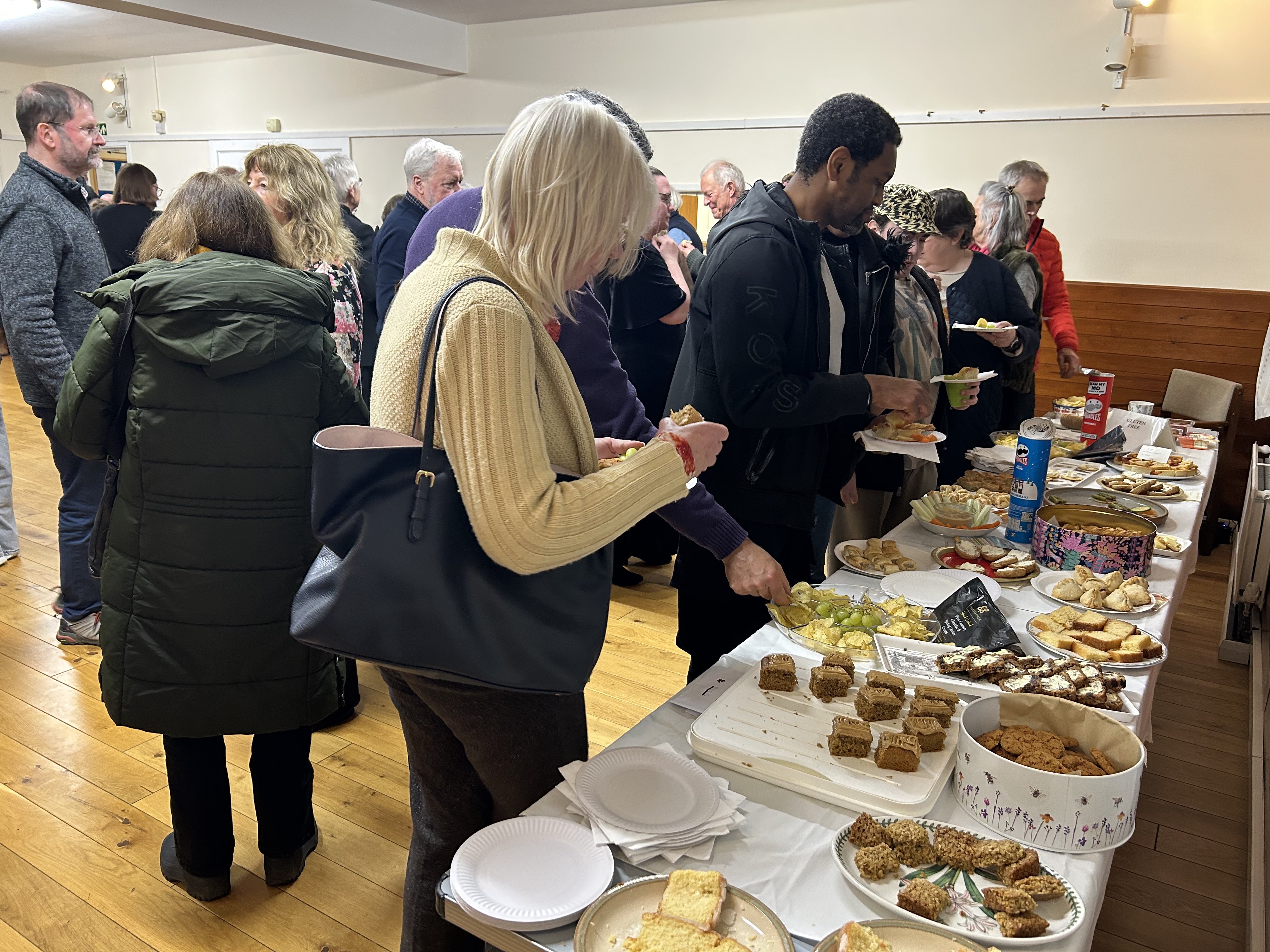 The audience enjoy the usual good spread of home-made nibbles during the interval of the December 2013 concert in Wantage.
